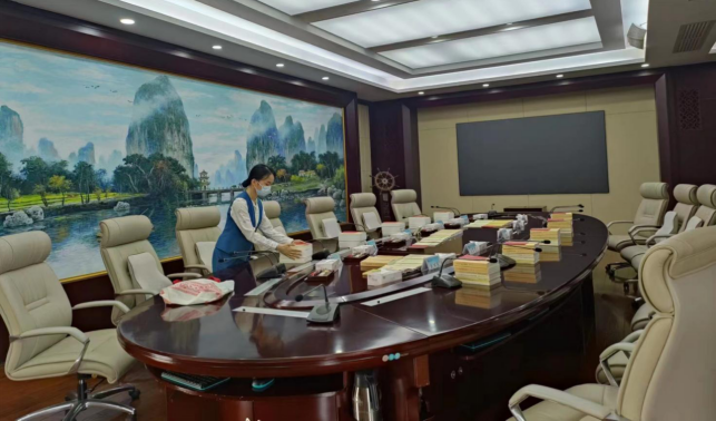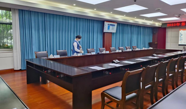 本周做好会场布置、会前、会后保洁及会务各项服务共计38场,其中重要接待21场。