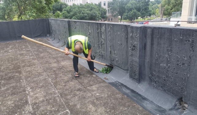 清除土木学院小礼堂楼宇外墙寄生绿植