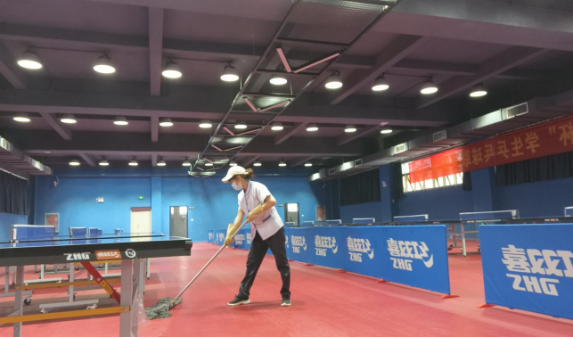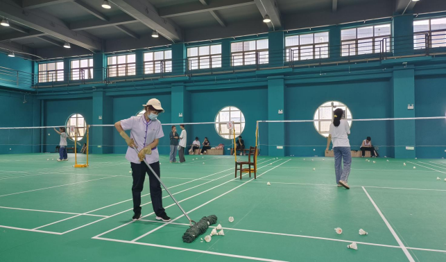 对东体育馆、网球中心、体育学院进行日常卫生保洁工作。