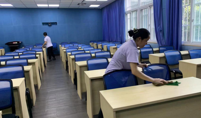 本周协助外国语学院做好2023年全国外语水平(WSK)考试、2023年上半年剑桥商务英语(BBC)高级考试和2023年上半年全国大学生英语四、六级口语考试各项工作;协助继续教育学院做好2023年同等学力人员申请硕士学位全国统考各项工作。做好考场教室的开放管理、保洁卫生、防疫消杀、检查调试考试供电、灯光、风扇(空调)、施铃、监控等设备等服务保障工作。