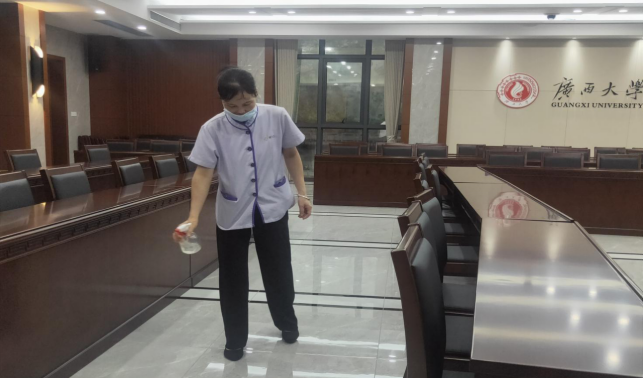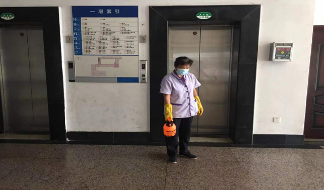 本周对公共教学楼宇的楼梯、走廊、门把手、课桌椅、电脑键盘、鼠标、水龙头、楼梯扶手、电梯间及按钮等高频接触表面进行重点杀菌消毒837次。