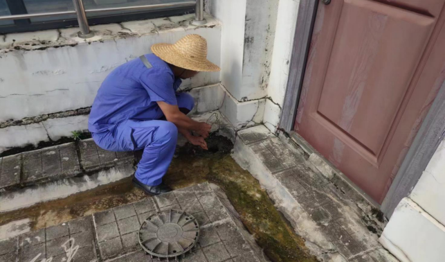 清理社区楼楼宇外围排水设施内杂物及杂草