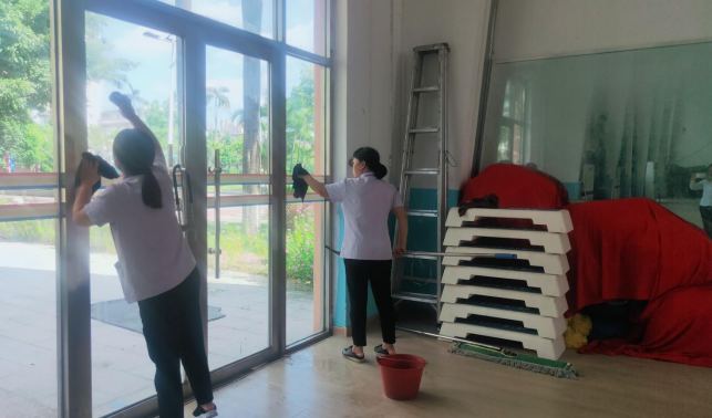 对东体育馆、网球中心、体育学院进行日常卫生保洁工作。