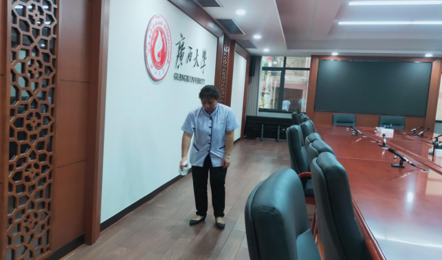 对校办楼、君武馆、新东园勤恳楼(后勤)、财务处、办公楼、大学生活动中心、保卫处等办公楼宇进行日常卫生保洁等服务工作。