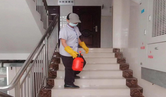 对公共教学楼宇的楼梯、走廊、门把手、课桌椅、电脑键盘、鼠标、水龙头、楼梯扶手、电梯间及按钮等高频接触表面进行重点杀菌消毒629次。