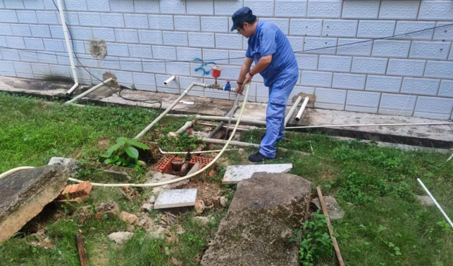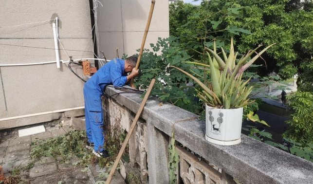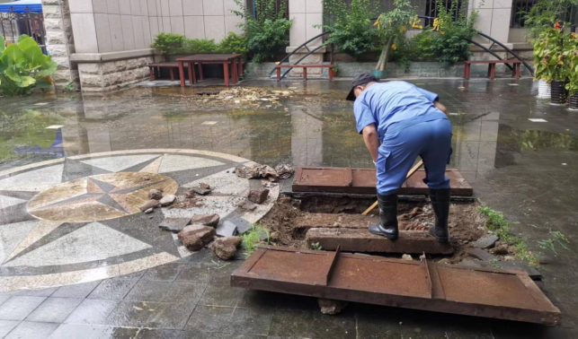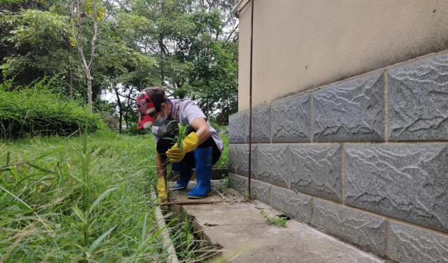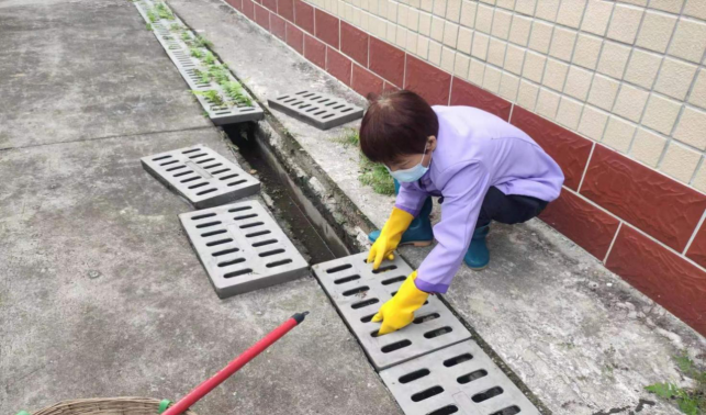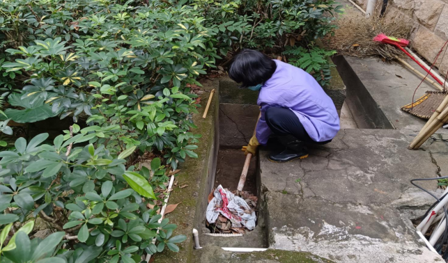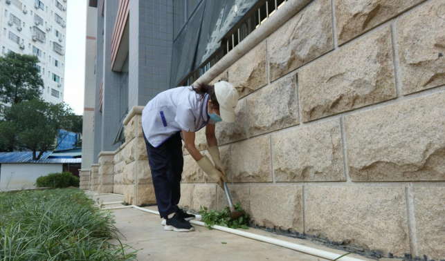 清理保卫处楼宇外围排水设施内杂物和杂草