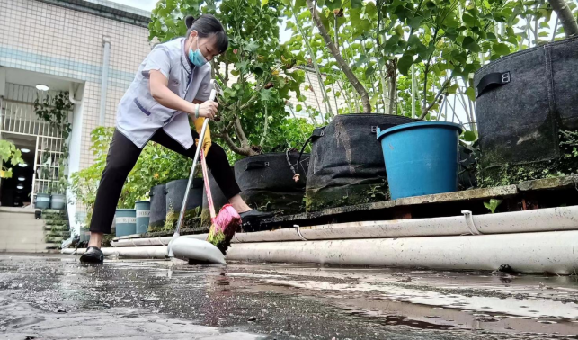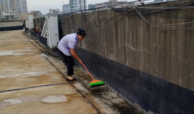 对语言中心、二教、三教、六教、十教、十一教、研究生院和行健学院一教、二教、四教共11栋教学楼宇进行日常卫生保洁服务工作,本周清理公共楼宇排水设施37次,清理公共楼宇天台31处。