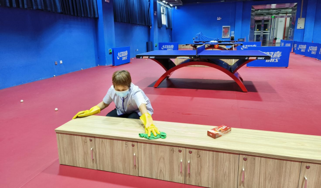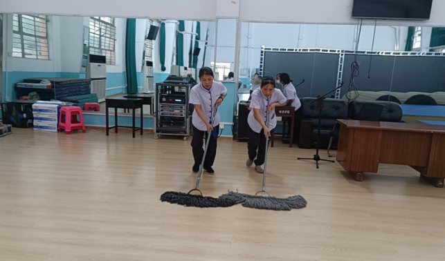 对西校园体育馆、体育学院、东校园体育馆等场馆进行日常卫生保洁工作,并协助做好中华人民共和国第一届学生(青年)运动会各项准备工作。