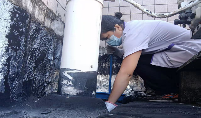 清理林学院楼宇天台排水设施内淤泥和杂草