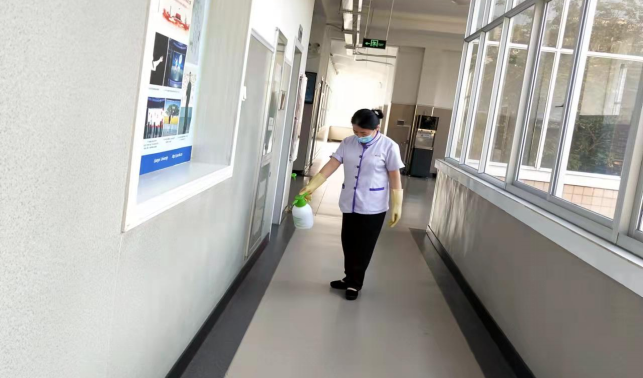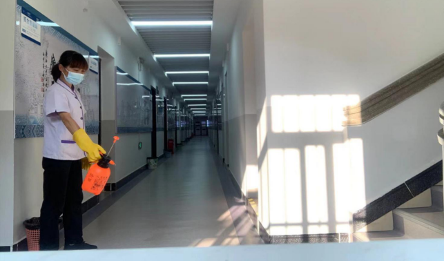 对公共教学楼宇的楼梯、走廊、门把手、课桌椅、电脑键盘、鼠标、水龙头、楼梯扶手、电梯间及按钮等高频接触表面进行重点杀菌消毒927次。
