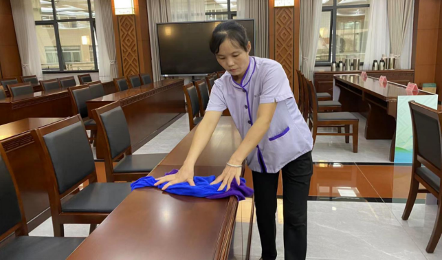 做好学校会议会场布置、会前、会后保洁及会务各项服务共计30场,其中重要接待10场。
