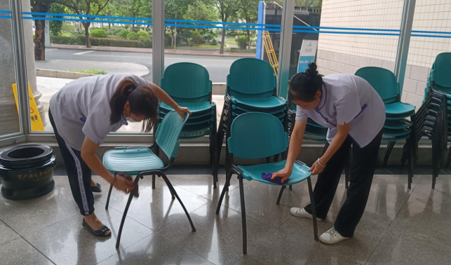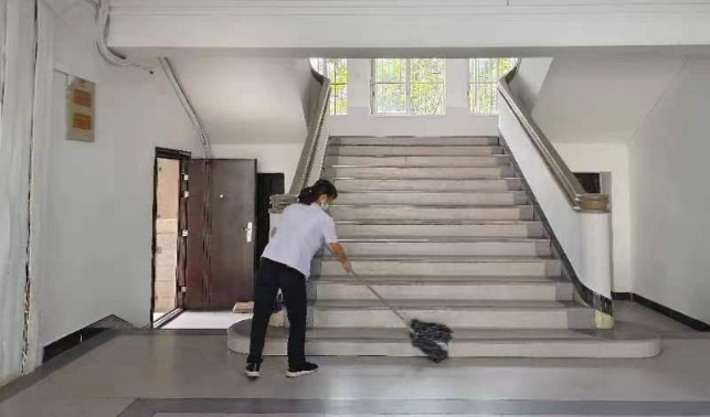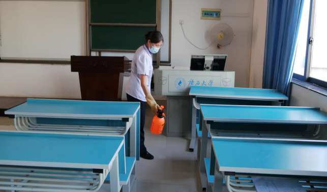 对公共教学楼宇的楼梯、走廊、门把手、课桌椅、电脑键盘、鼠标、水龙头、楼梯扶手、电梯间及按钮等高频接触表面进行重点杀菌消毒836次。
