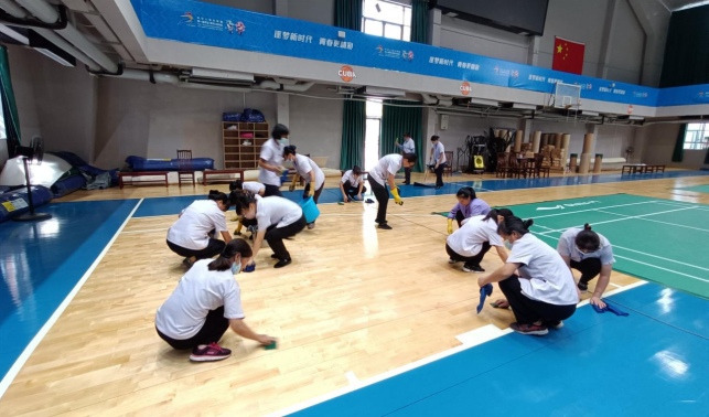 做好第一届学青会场馆卫生保障工作,加强东体育馆、体育学院日常卫生保洁。