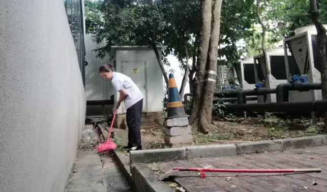 对语言中心、二教、三教、六教、十教、十一教、研究生院和行健学院一教、二教、四教共11栋教学楼宇进行日常卫生保洁服务工作,本周清理公共楼宇排水设施33次,清理公共楼宇天台30处。