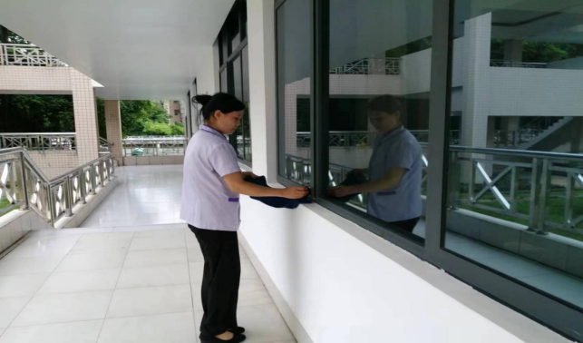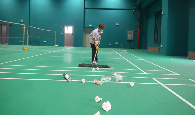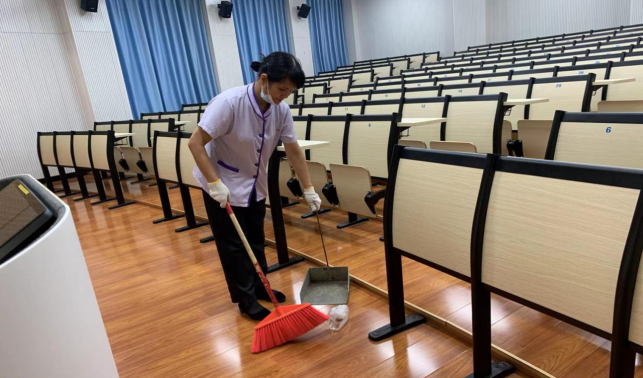 助力第一届学青会场馆卫生保障工作,加强东体育馆、体育学院日常卫生保洁。