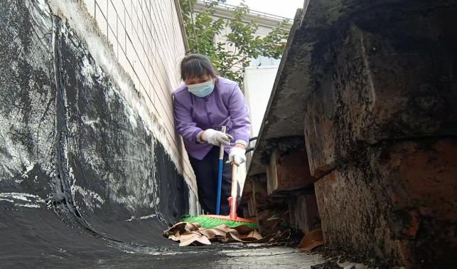 清理公共管理学院楼宇天台排水设施内淤泥和杂草