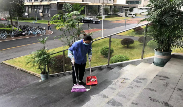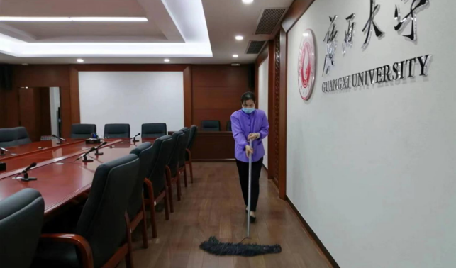 对君武馆、财务处、办公楼、大学生活动中心、保卫处等办公楼宇进行日常卫生保洁等服务工作。