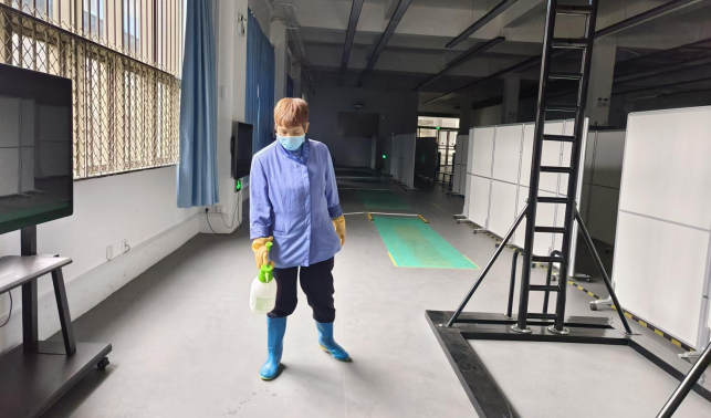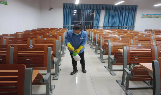 对公共教学楼宇的楼梯、走廊、门把手、课桌椅、电脑键盘、鼠标、水龙头、楼梯扶手、电梯间及按钮等高频接触表面进行重点杀菌消毒564次。