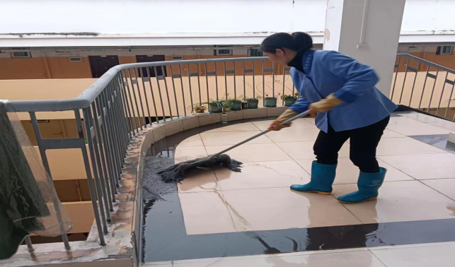 对语言中心、二教、三教、六教、十教、十一教、研究生院和行健学院教室等教学楼宇进行日常卫生保洁服务工作,本周清理公共楼宇排水设施41次,清理公共楼宇天台32处。
