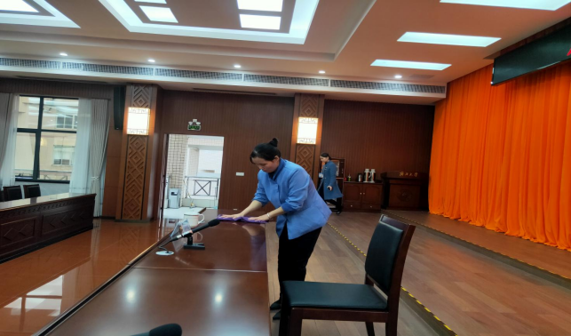 对君武馆、财务处、办公楼、大学生活动中心、保卫处等办公楼宇进行日常卫生保洁等服务工作。