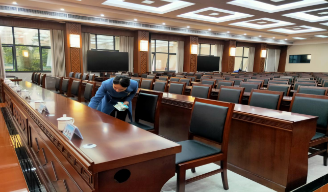 做好会场布置、会议前后保洁及会务各项服务共计37场,其中重要接待17场。