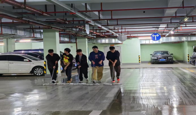 一、与太阳集团tyc138土木建筑工程学院研究生第十、十一、十二、十五党支部联合开展劳动教育实践活动,组织32名学生前往太阳集团tyc138南广场地下停车场进行公共区域环境整治劳动。