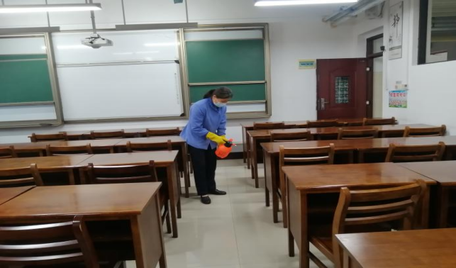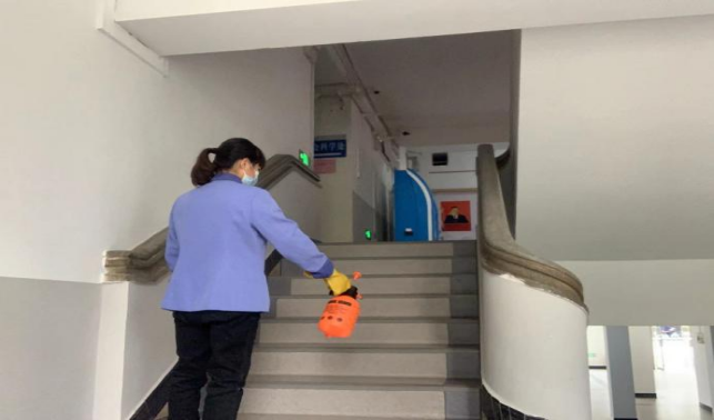 对公共教学楼宇的楼梯、走廊、门把手、课桌椅、电脑键盘、鼠标、水龙头、楼梯扶手、电梯间及按钮等高频接触表面进行重点杀菌消毒605次。