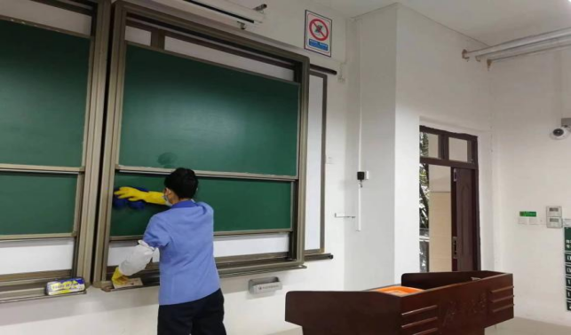 对君武馆、财务处、办公楼、大学生活动中心、保卫处等办公楼宇进行日常卫生保洁等服务工作。