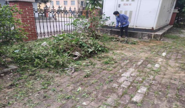 清除农学院土化楼院内杂草