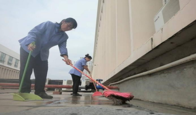 对语言中心、二教、三教、六教、十教、十一教、研究生院和行健学院教室等教学楼宇进行日常卫生保洁服务工作,本周清理公共楼宇排水设施37次,清理公共楼宇天台30处。