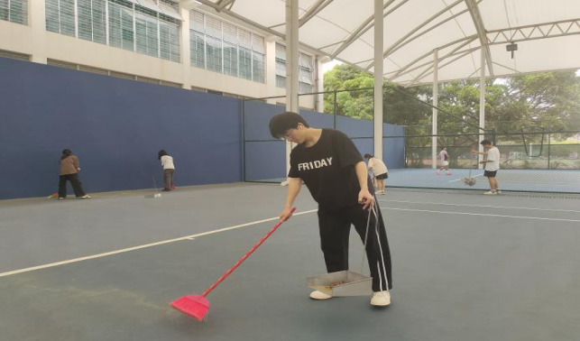 组织学生在西校园网球场、南大门地下停车场开展劳动教育体验活动。