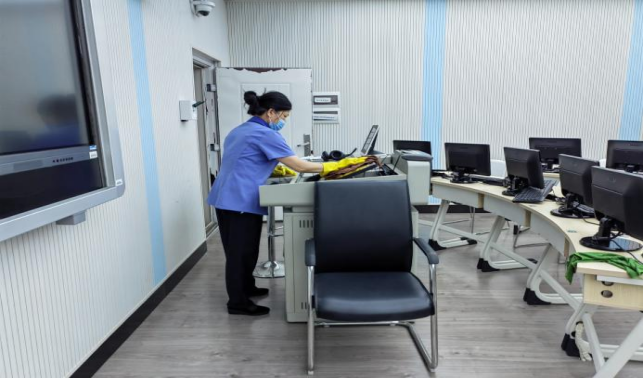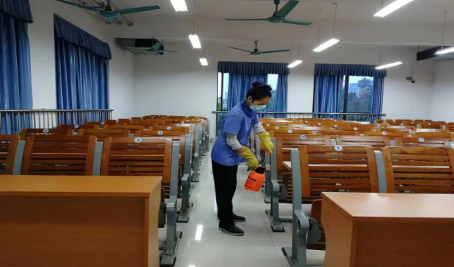 对公共教学楼宇的楼梯、走廊、门把手、课桌椅、电脑键盘、鼠标、水龙头、楼梯扶手、电梯间及按钮等高频接触表面进行重点杀菌消毒649次。