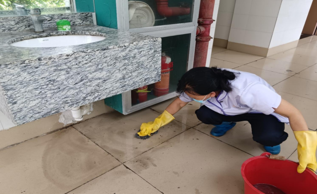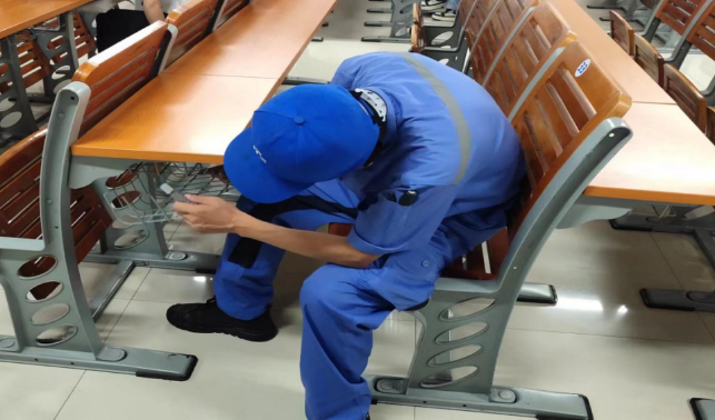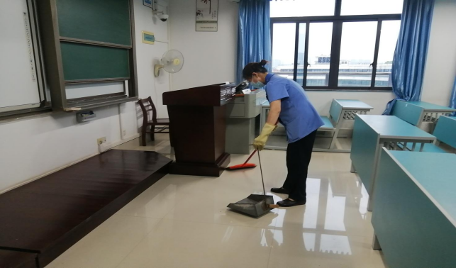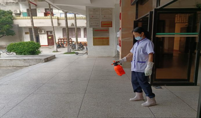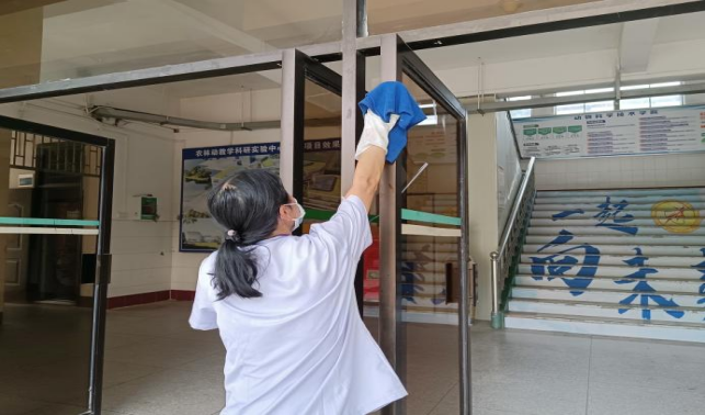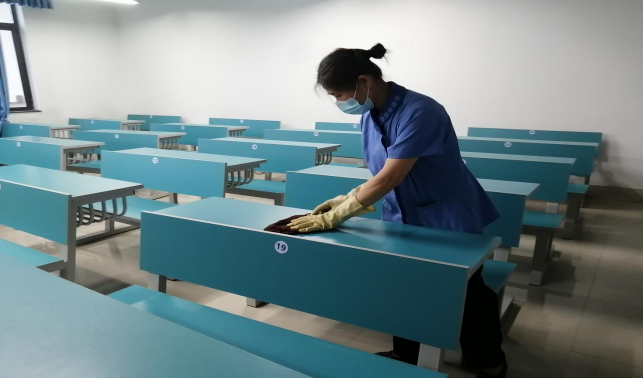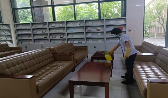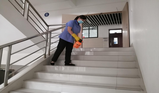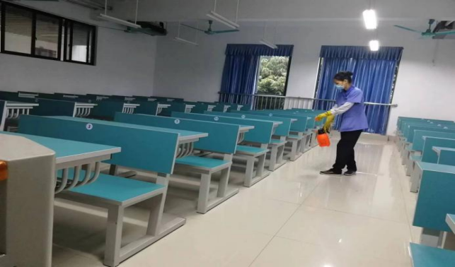 对公共教学楼宇的楼梯、走廊、门把手、课桌椅、电脑键盘、鼠标、水龙头、楼梯扶手、电梯间及按钮等高频接触表面进行重点杀菌消毒675次。