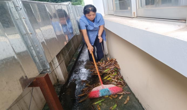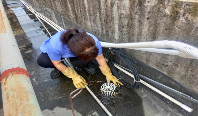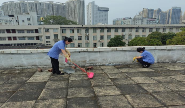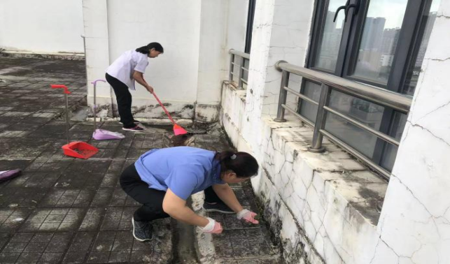对语言中心、二教、三教、六教、十教、十一教、研究生院和行健学院教室等教学楼宇进行日常卫生保洁服务工作,本周清理公共楼宇外围排水设施68次,清理公共楼宇天台排水设施55处。