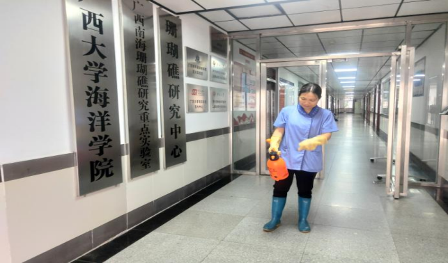 对中国-东盟经济学院、土木大平台、海洋学院、动科院等26个学院进行日常卫生保洁工作。