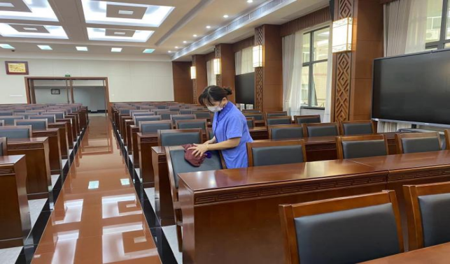 做好会场布置、会议前后保洁及会务各项服务共计28场,其中重要接待18场。