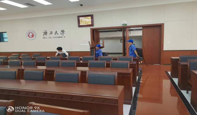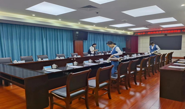 对君武馆、财务处、办公楼、大学生活动中心、保卫处等办公楼宇进行日常卫生保洁等服务工作