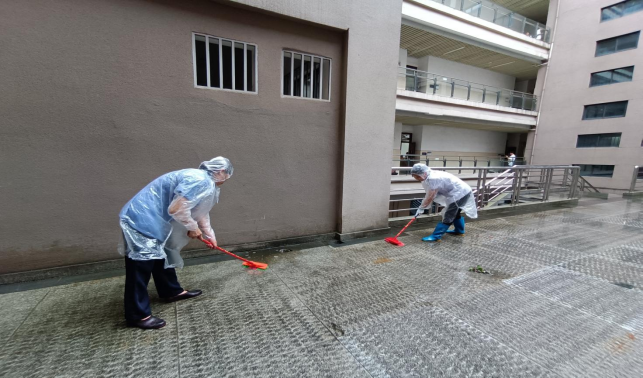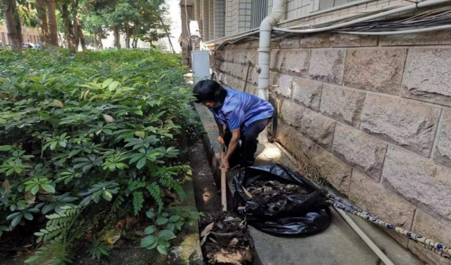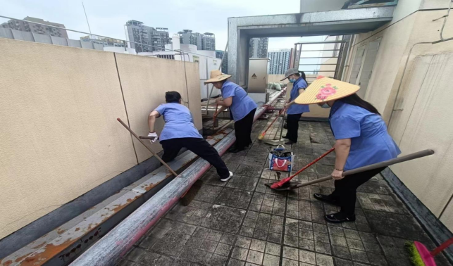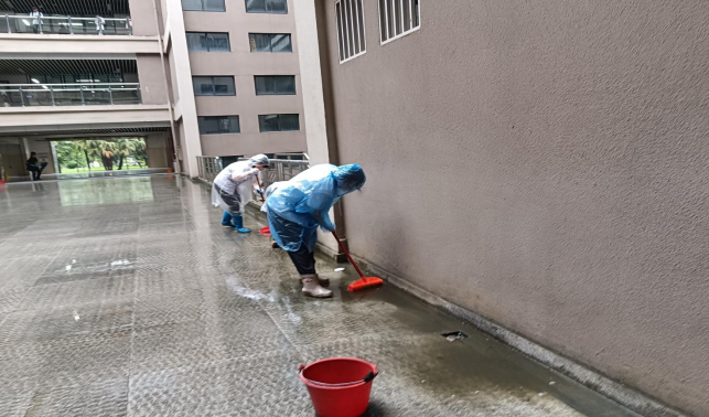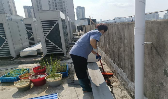 对语言中心、二教、三教、六教、十教、十一教、研究生院和行健学院教室等教学楼宇进行日常卫生保洁服务工作,本周清理公共楼宇外围排水设施65次,清理公共楼宇天台排水设施51处。