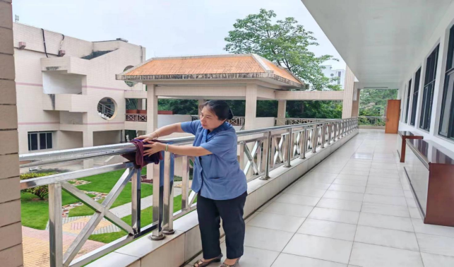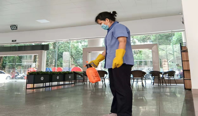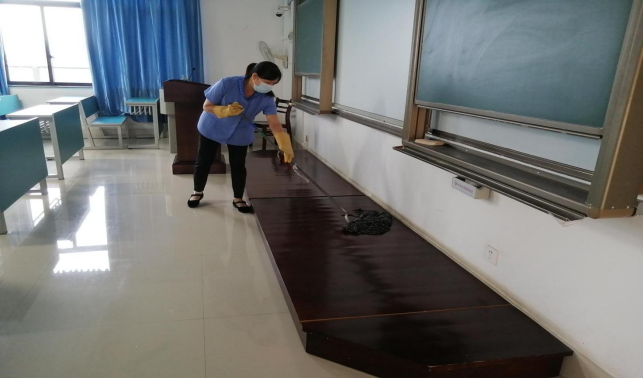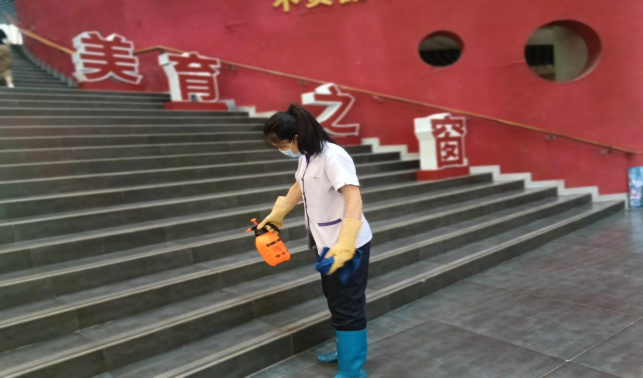 对公共教学楼宇的楼梯、走廊、门把手、课桌椅、电脑键盘、鼠标、水龙头、楼梯扶手、电梯间及按钮等高频接触表面进行重点杀菌消毒657次。