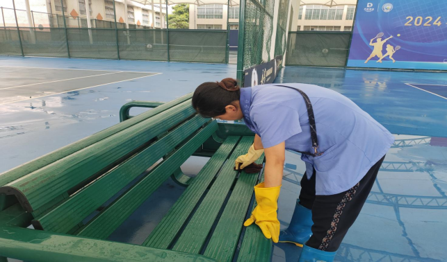 对东校园、西校园体育场馆进行日常卫生保洁工作。
