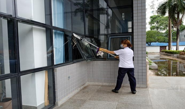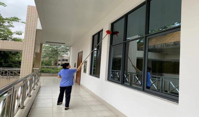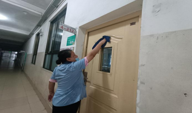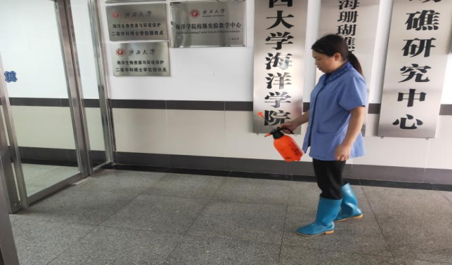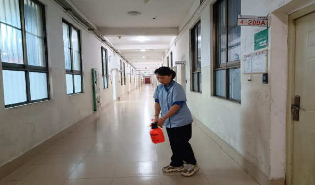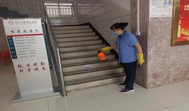 对公共教学楼宇的楼梯、走廊、门把手、课桌椅、电脑键盘、鼠标、水龙头、楼梯扶手、电梯间及按钮等高频接触表面进行重点杀菌消毒632次。