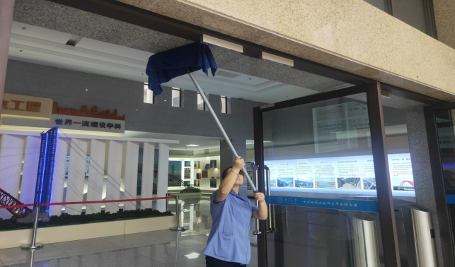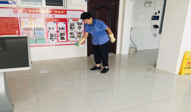 对君武馆、财务处、办公楼、大学生活动中心、保卫处等办公楼宇进行日常卫生保洁等服务工作。