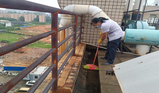 对语言中心、二教、三教、六教、十教、十一教、研究生院和行健学院教室等教学楼宇进行日常卫生保洁服务工作,本周清理公共楼宇外围排水设施63次,清理公共楼宇天台排水设施49处。