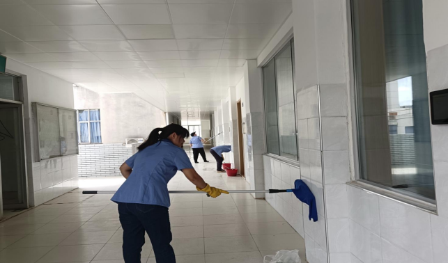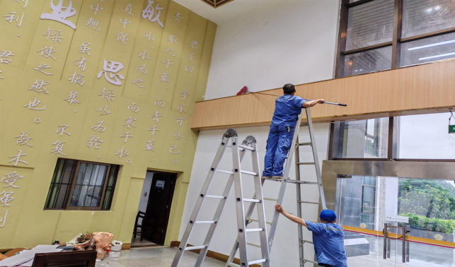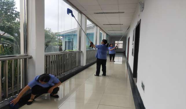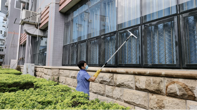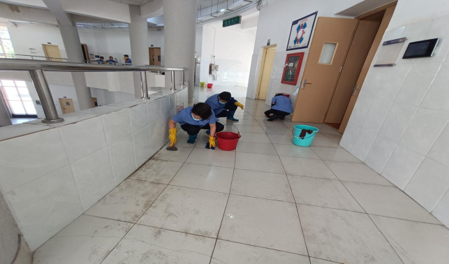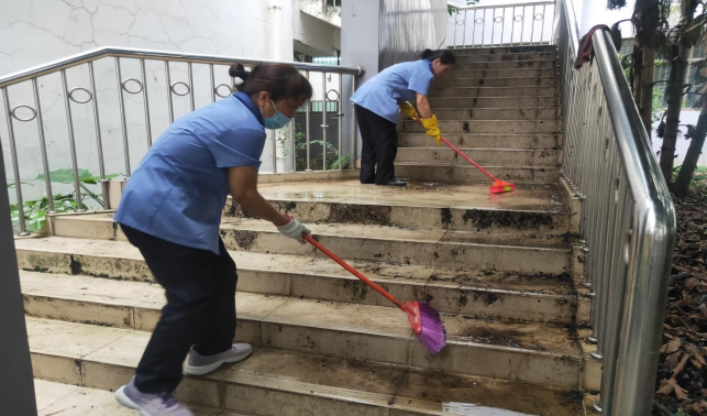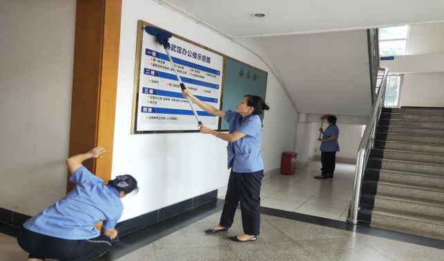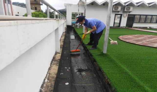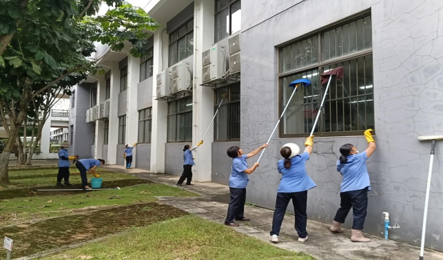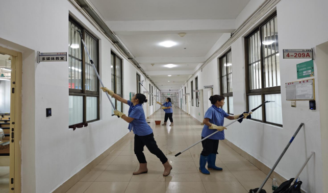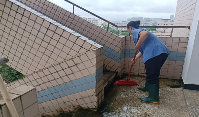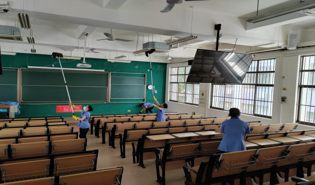 对语言中心、二教、三教、六教、十教、十一教、十五教、十六教和研究生院共九栋教学楼宇进行日常卫生保洁服务工作。7月-8月清理公共楼宇排水设施326次,清理公共楼宇天台205栋。
