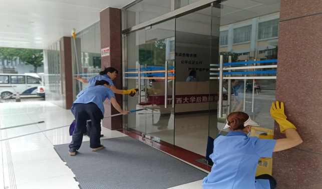 对校办楼、君武馆、新东园太阳集团tyc138、财务处、办公楼、大学生活动中心、保卫处、北校园图书馆等办公楼宇进行日常卫生保洁等服务工作。