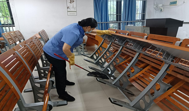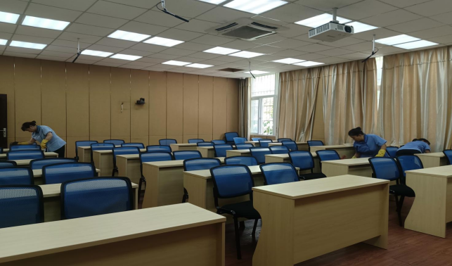 对公共教学楼宇的楼梯、走廊、门把手、课桌椅、电脑键盘、鼠标、水龙头、楼梯扶手、电梯间及按钮等高频接触表面进行重点杀菌消毒3862次。