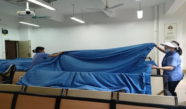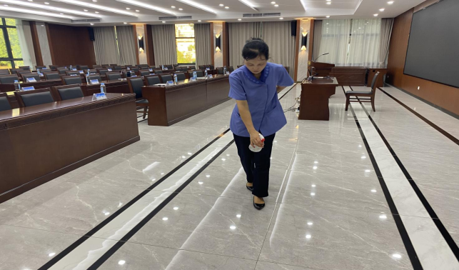 7月-8月共计79场会议,其中重要接待36场,做好会场布置、会前、会后保洁及会务各项服务。