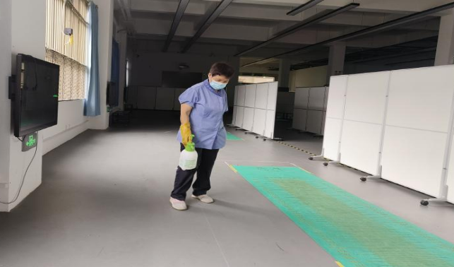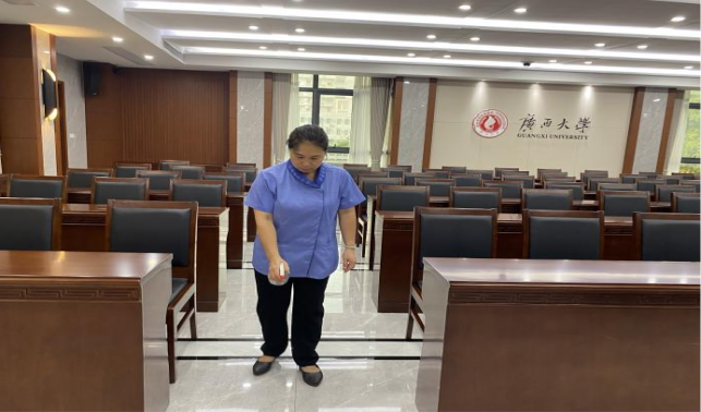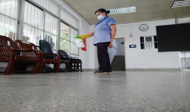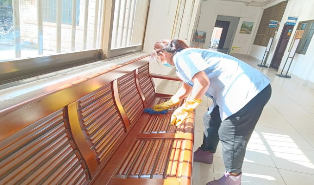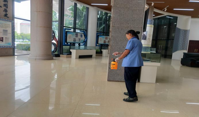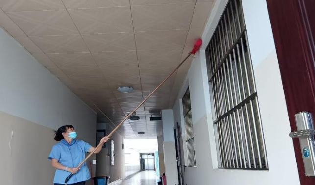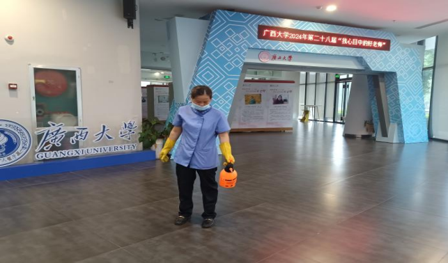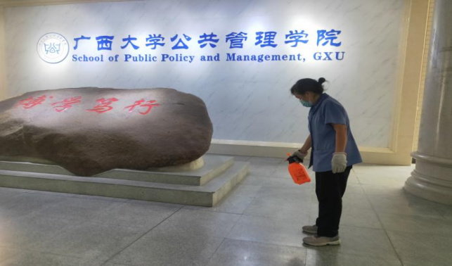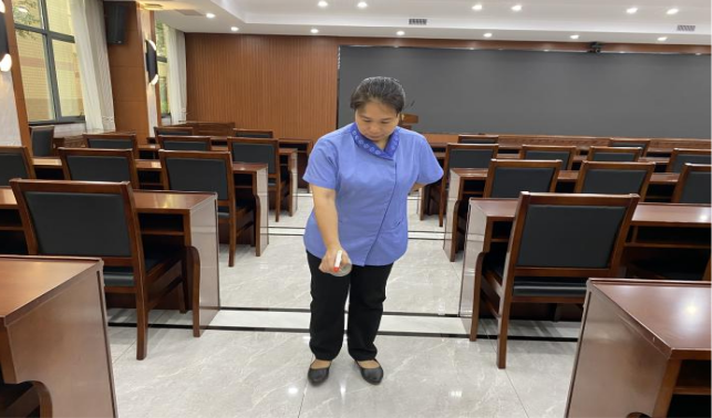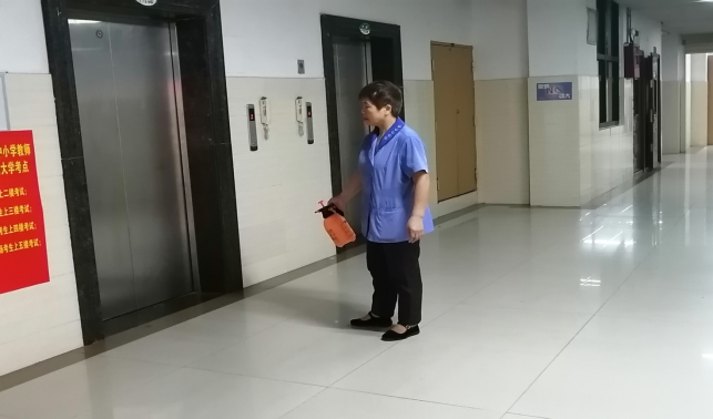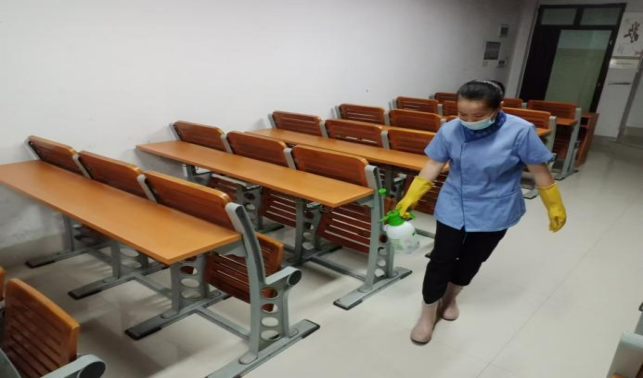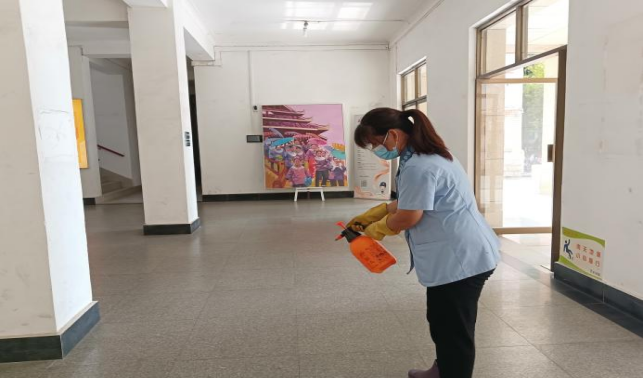对公共教学楼宇的楼梯、走廊、门把手、课桌椅、电脑键盘、鼠标、水龙头、楼梯扶手、电梯间及按钮等高频接触表面进行重点杀菌消毒624次。