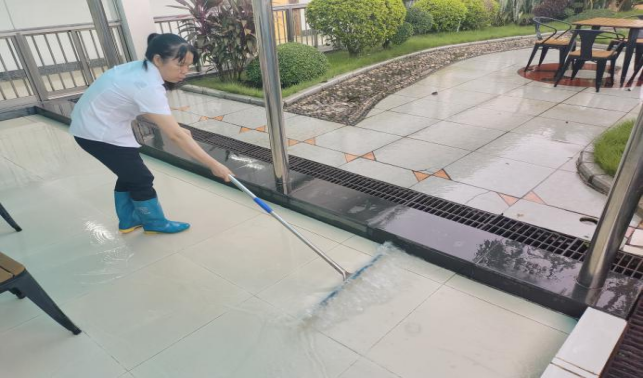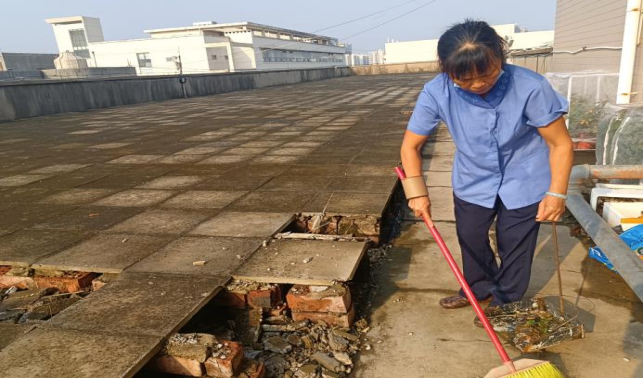 对语言中心、二教、三教、六教、十教、十一教、十五教、十六教和研究生院教室等教学楼宇进行日常卫生保洁服务工作,本周清理公共楼宇外围排水设施48次,清理公共楼宇天台排水设施45处。