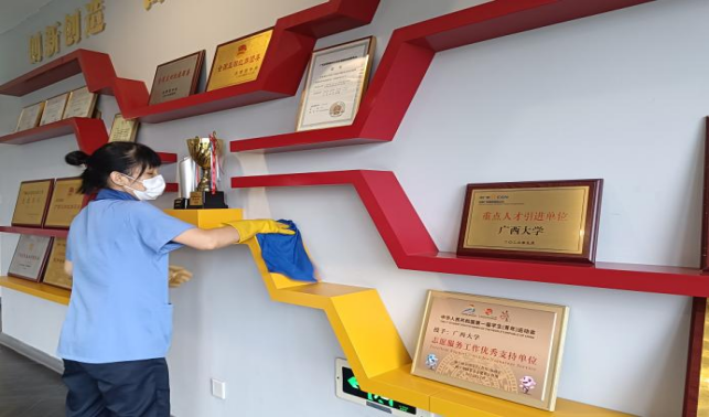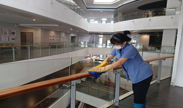 对君武馆、财务处、办公楼、大学生活动中心、保卫处等办公楼宇进行日常卫生保洁等服务工作。